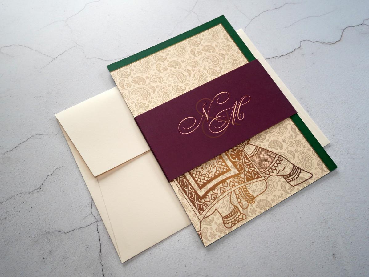 Each invitation includes a single 'wedding' insert, belly band and coloured envelope.