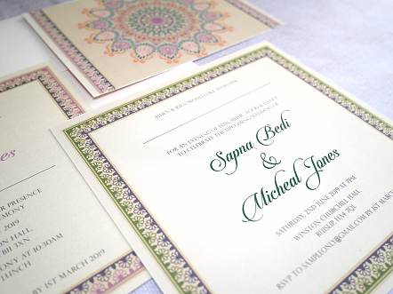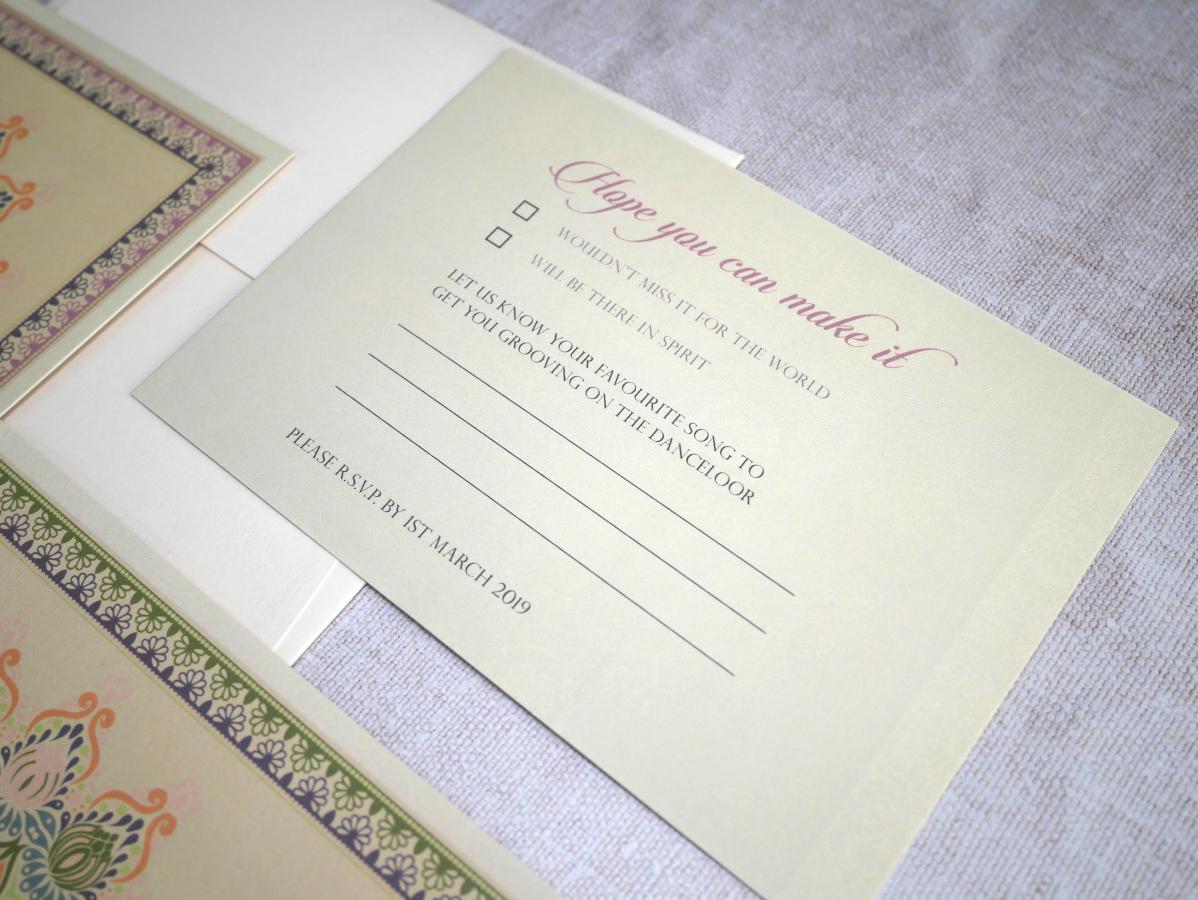 RSVP cards are provided with C6 envelopes to match the main envelope.