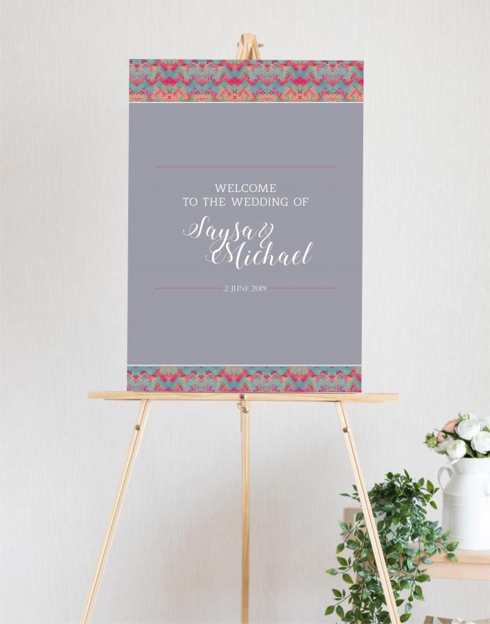Our welcome signs are printed on 10mm form and so will be rigid and can be displayed on an easel. (Easel is not included - check with your venue as this is something they tend to have!)